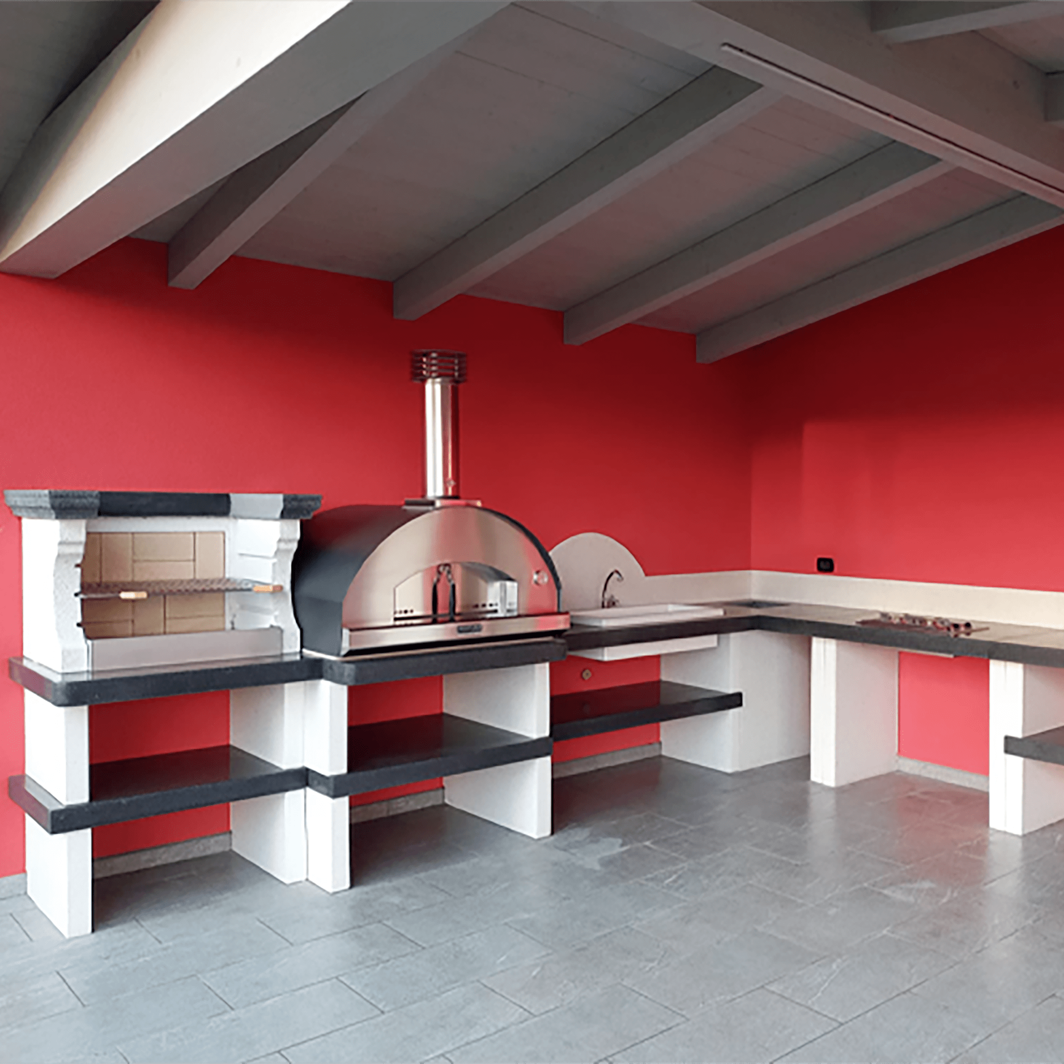 Per garantire la massima comodità, il nostro barbecue in cemento è, inoltre, dotato di una zona che puoi dedicare alla conservazione del legno da ardere o agli accessori necessari. Puoi anche personalizzare ulteriormente la struttura con l’aggiunta di un ripiano laterale o di un lavandino da esterno.